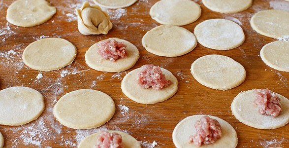 Ежедневно вручную наши мастерицы лепят пельмени, вареники, манты, пекут блины и фаршируют начинками на любой вкус! Мы готовим только из свежих продуктов, мяса высокого качества и натуральных специй, никаких соевых заменителей и усилителей вкусов.